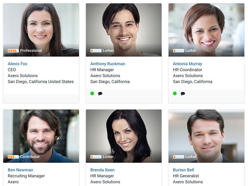 With Axero Solutions' user-friendly employee directory software, your teams and coworkers can quickly access detailed profiles, an organizational chart, and other useful tools. Axero Solutions promotes a culture of closeness and humanization in organizations. Finding and contacting coworkers is a breeze using Axero's built-in employee directory.