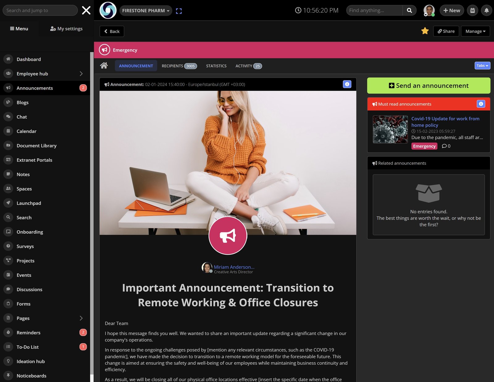 The optimal internal communication software should adeptly support remote work and facilitate asynchronous communication, knowledge-sharing, and collaboration. These functionalities should seamlessly span from top management down to the staff level, ensuring a cohesive and interconnected communication infrastructure.