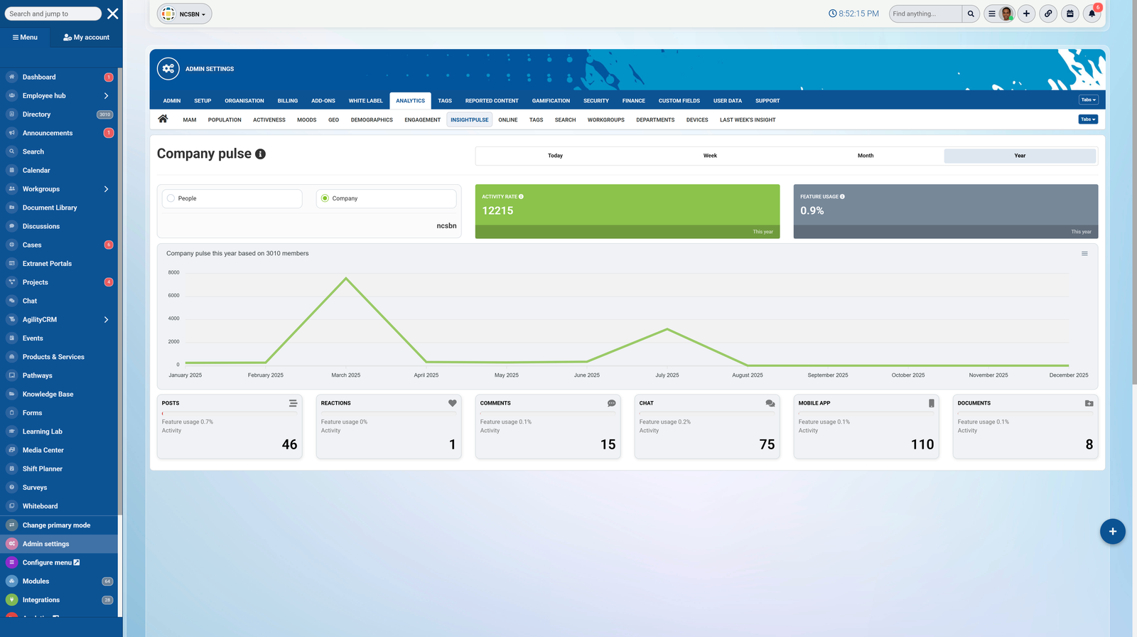 - What communication channels are included (chat, feeds, notifications)?