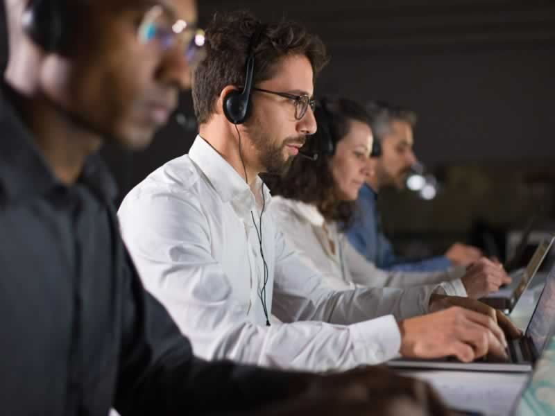 - A customer service agent at a call center resolving a customer's billing issue.