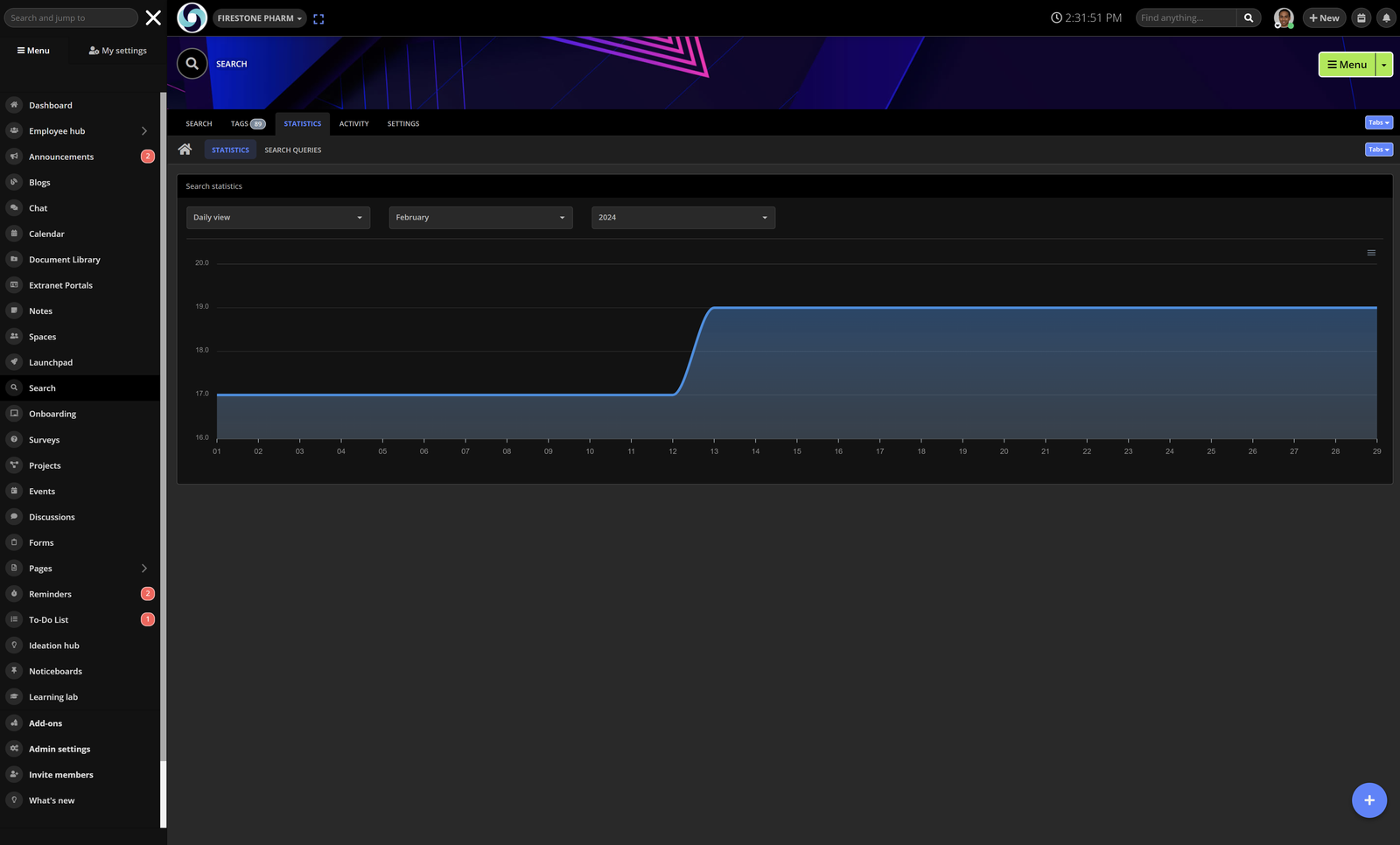 - Unique Search Users: Track the number of individuals utilizing the intranet search engine.