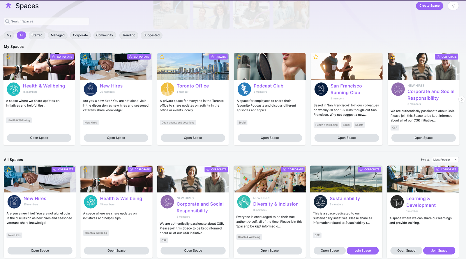 The most popular intranet software vendors now include built-in engagement features like: