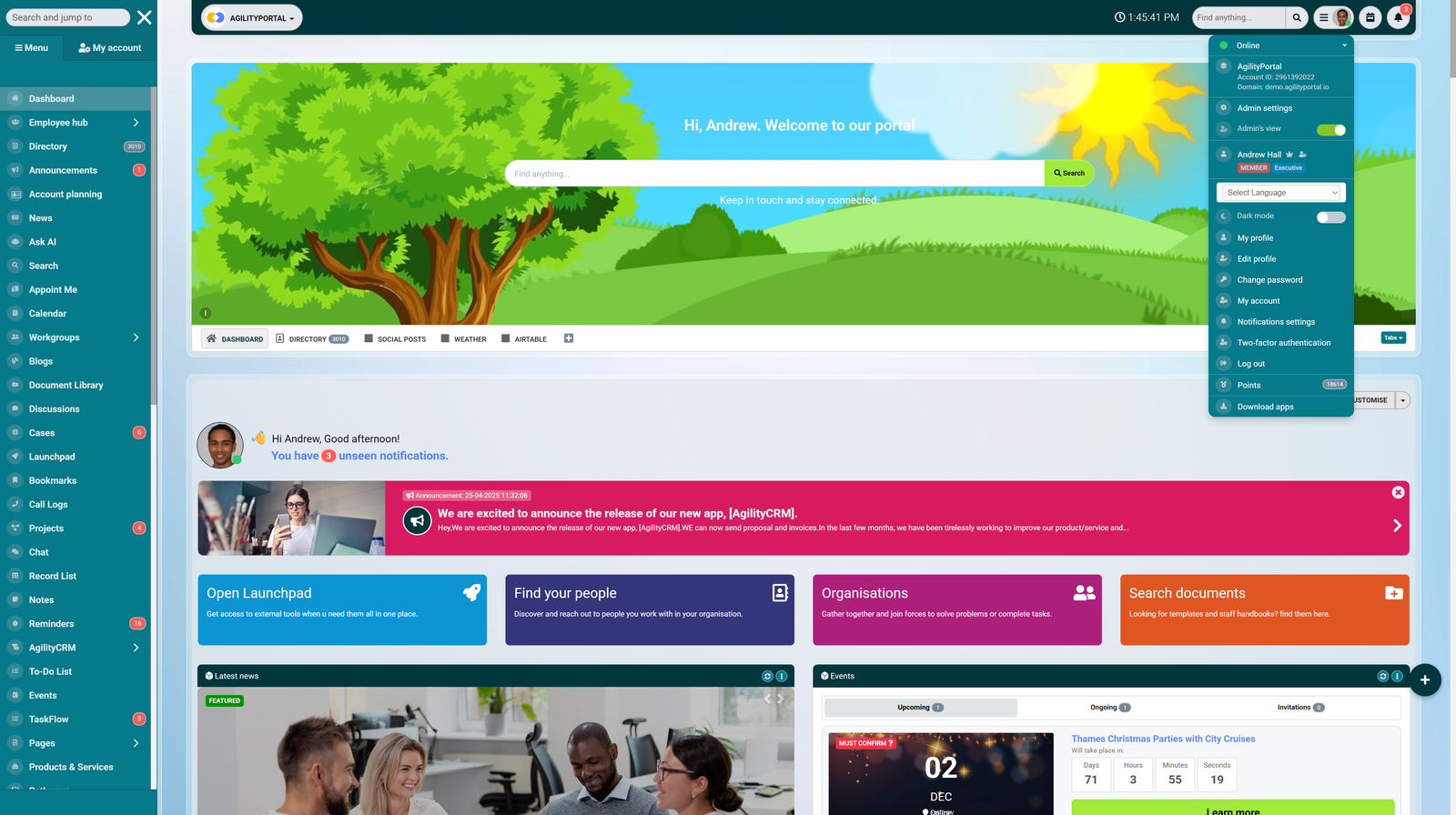 A more modern example is AgilityPortal, a digital workplace and intranet solution built to connect employees across offices, job sites, or remote locations.